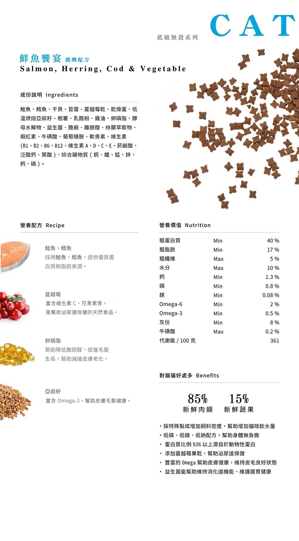 ・ 豐富的Omega幫助皮膚健康,維持皮毛良好狀態